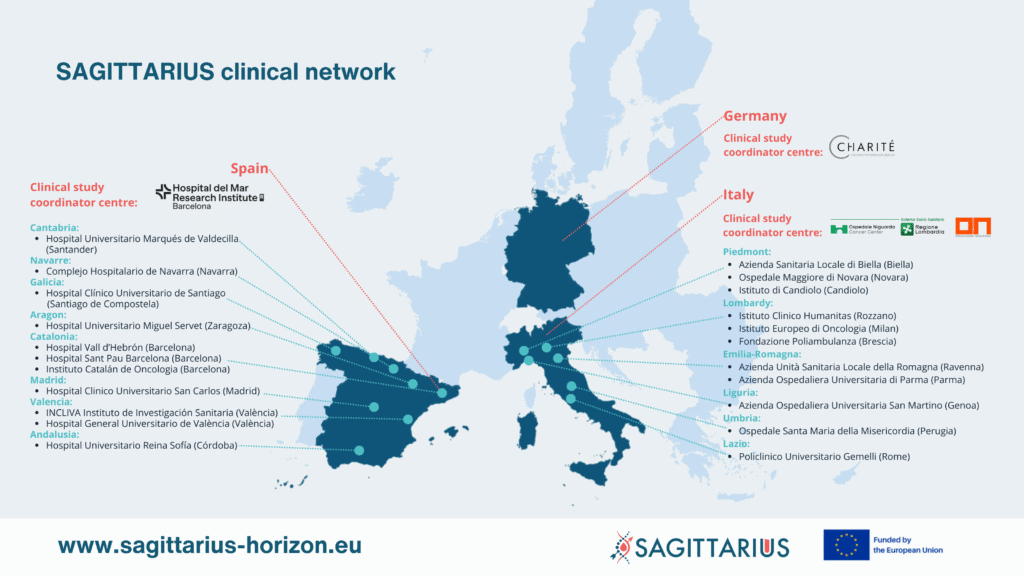 SAGITTARIUS is a large and multifaceted clinical trial project. It is being led by a highly multidisciplinary consortium of data scientists, health and social care experts from 5 different European countries - Italy, Belgium, Estonia, Spain, and Germany. The Consortium works alongside a network of highly qualified cancer centres in Italy, Spain and Germany where the SAGITTARIUS approach will be clinically tested.